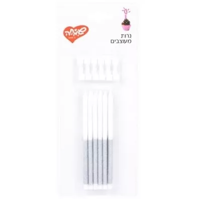 נרות לבנים ארוכים עם גליטר 12 יח' – כסף